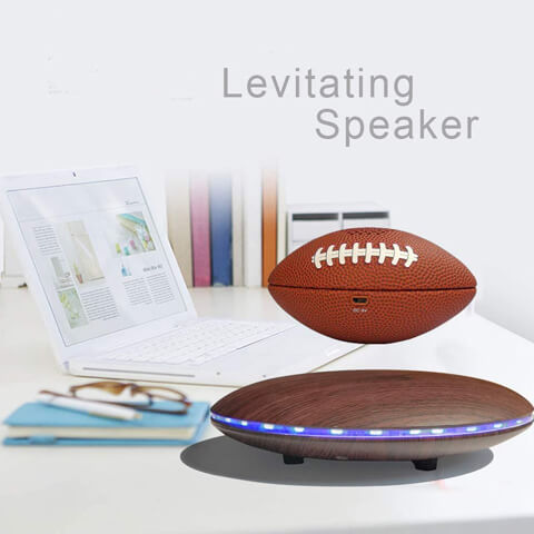 LANGTU Infinity Orb Magnetic Levitating Bluetooth 5.0 LED Portable Wireless Floating Speaker 3W im Football-Stil, 360-Grad-Drehung, für Wohnkultur, Schreibtisch, Geschenk usw.