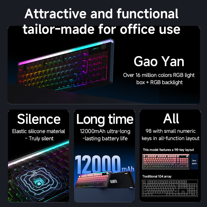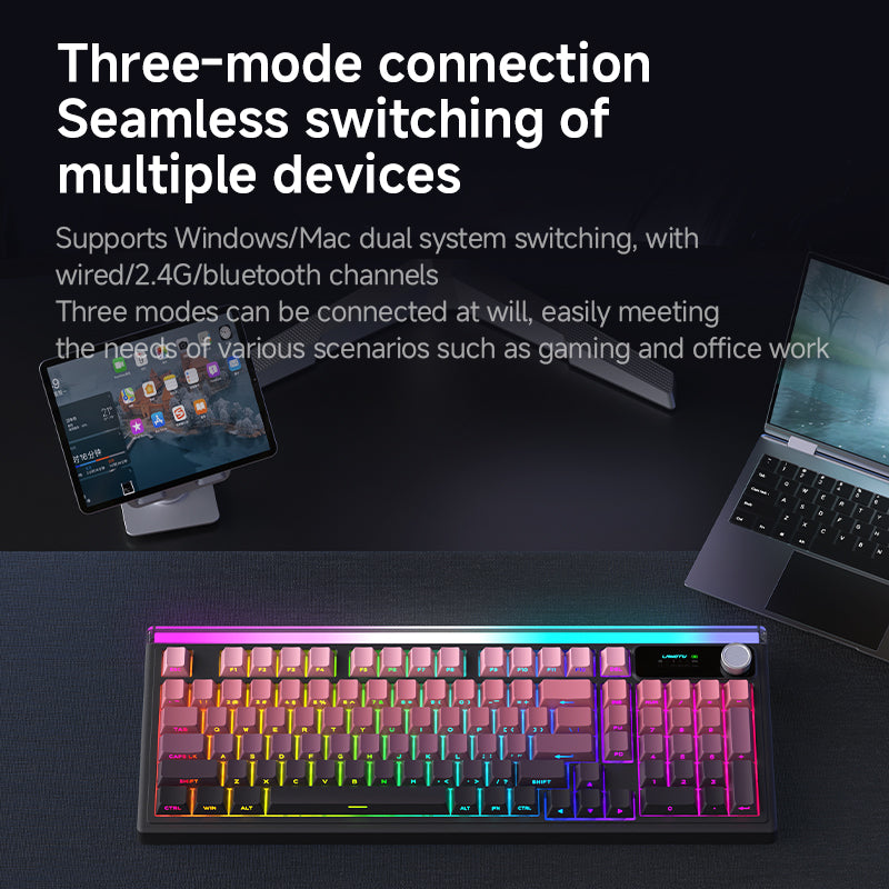 LANGTU L99 Tri-Mode Comfortable & Silent Office/Gaming Keyboard (Dynamic Backlighting, Multifunctional Display)